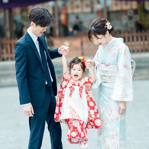 以前は数え年で行うのが主流でしたが、最近ではお子さまの成長やご家庭のタイミングに合わせて行うのが一般的です。 兄弟姉妹そろって一緒にお祝いするご家庭も多く見られます。